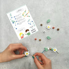 Vaikai gali patys susikurti savo gėlyčių apyrankę iš medinių gėlių, lapų ir apvalių karoliukų, naudojant tam skirtą elastinį siūlą su metaliniais galais, kurie palengvina karoliukų užmovimą.