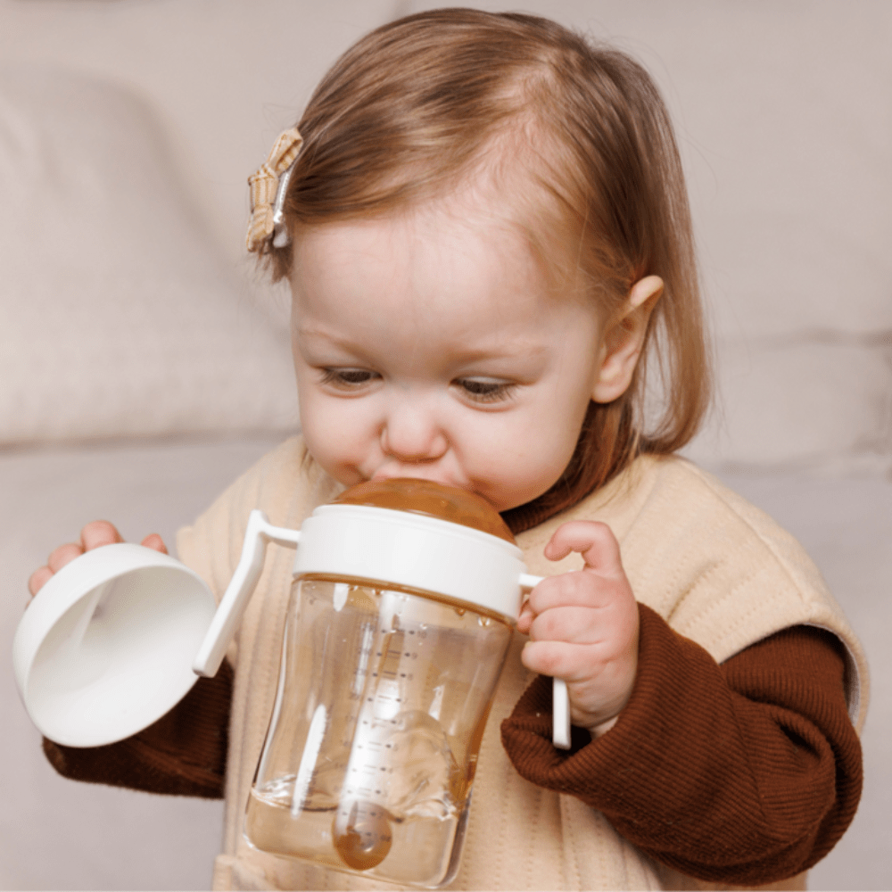 • Turi svertinį šiaudelį, kuris seka skystį, mažylis gali gerti betkokioje padėtyje.
