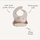 Mushie silikoninių seilinukų kolekcija yra smagi, spalvinga, nesenstanti ir įvairių dizainų. Raskite stilių, kuris atitiks jūsų skonį ir poreikius. Silikoninis seilinukas su kišenėle priekyje surinks krintantį maistą neleisdamas jam patekti ant drabužių ar grindų, o įmontuotos apvalios užsegimo sagtelės užtikrins patogų prigludimą.