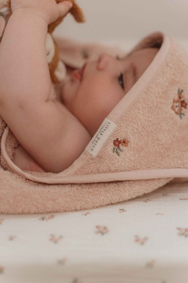 Apgaubkite savo mažylį šiluma ir švelnumu po kiekvienos maudynės! Šis gaubtas rankšluostis, pasiūtas iš 100% organinės medvilnės frotės, yra itin minkštas ir švelnus jautriai kūdikio odai. Švelni poplino gaubta dalis ne tik suteikia jaukumo, bet ir palaiko tinkamą galvos šilumą, apsaugodama nuo skersvėjų. Švelniai rožinė Blossom spalva ir išsiuvinėtos gėlytės iš „Fairy Garden“ kolekcijos suteikia žavingą, pasakišką akcentą, kuris papuoš kiekvieną maudynių ritualą.