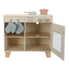 Dėmesio, mažieji virtuvės meistrai! Ši nuostabi medinė virtuvėlė puikiai tiks gardžiausiems patiekalams gaminti. Kepti pyragą orkaitėje, virti daržoves ant viryklės ar kepti skanėstus padės komplekte esantys 2 puodai, orkaitės pirštinė ir padėkliukas. Mygtukai su smagiomis iliustracijomis suteikia dar daugiau žaidimo tikroviškumo!