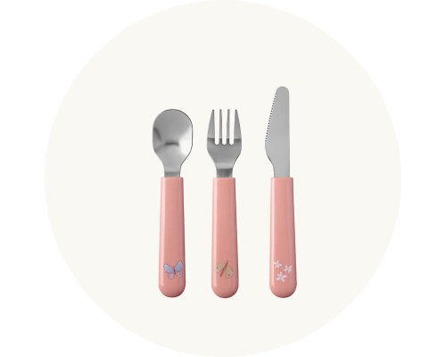 Vaikiški įrankiai yra pritaikyti mažoms rankoms, pagaminti iš saugių ir lengvai naudojamų medžiagų, padedančių lavinti valgymo įgūdžius.