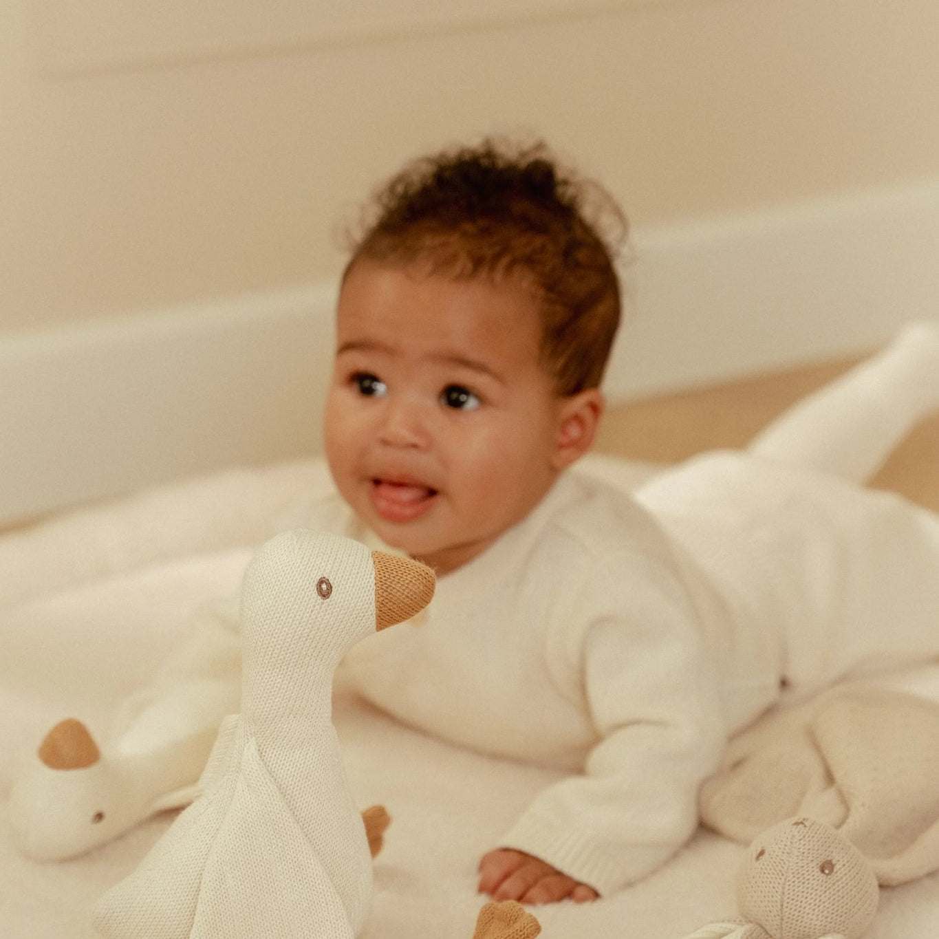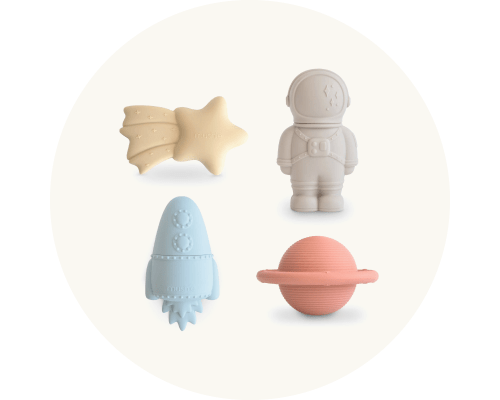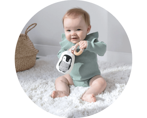 Rinkitės saugius ir minkštus žaislus, kurie skatina mažylių pojūčių vystymąsi, padeda mokytis pirmųjų garsų ir formų.